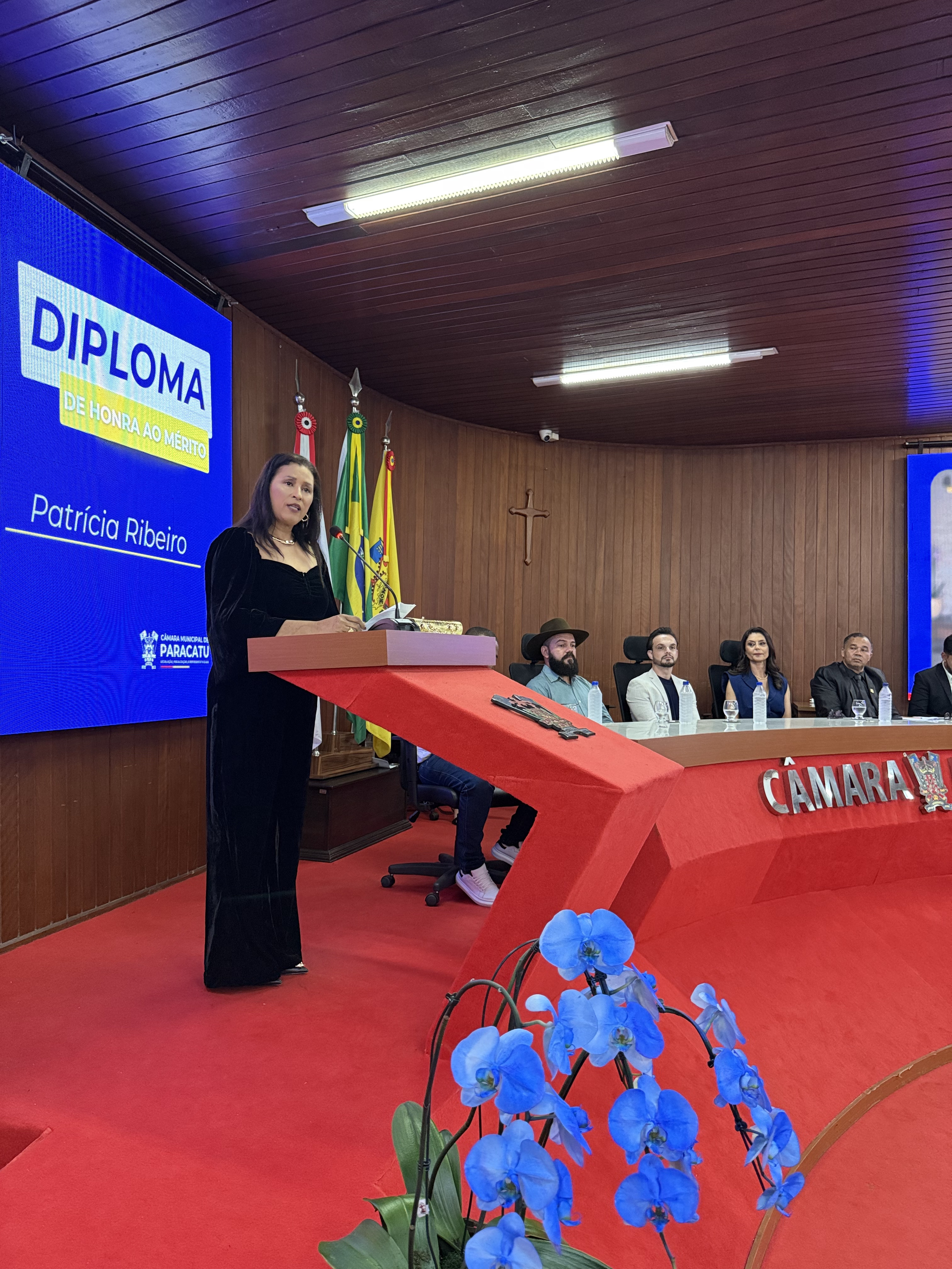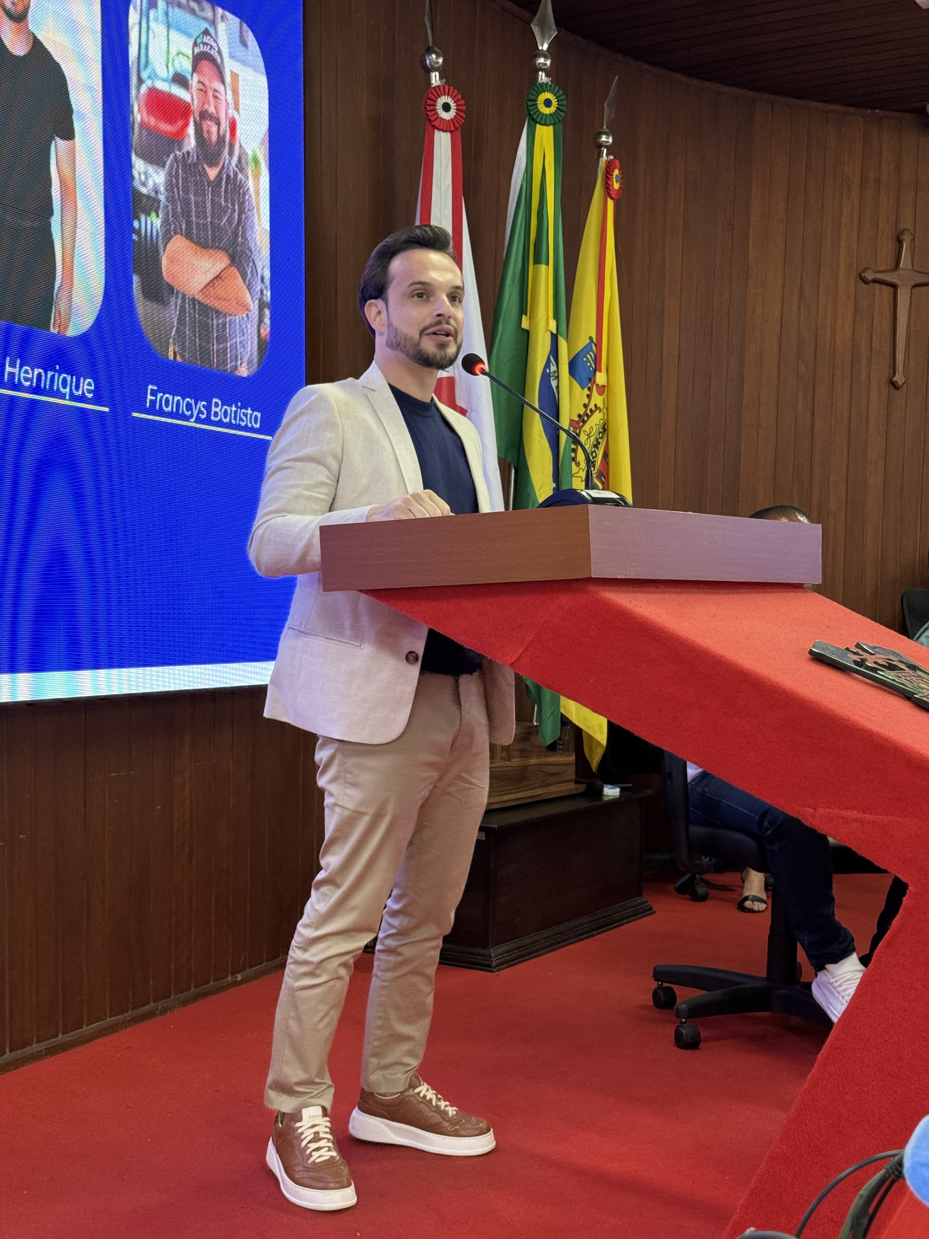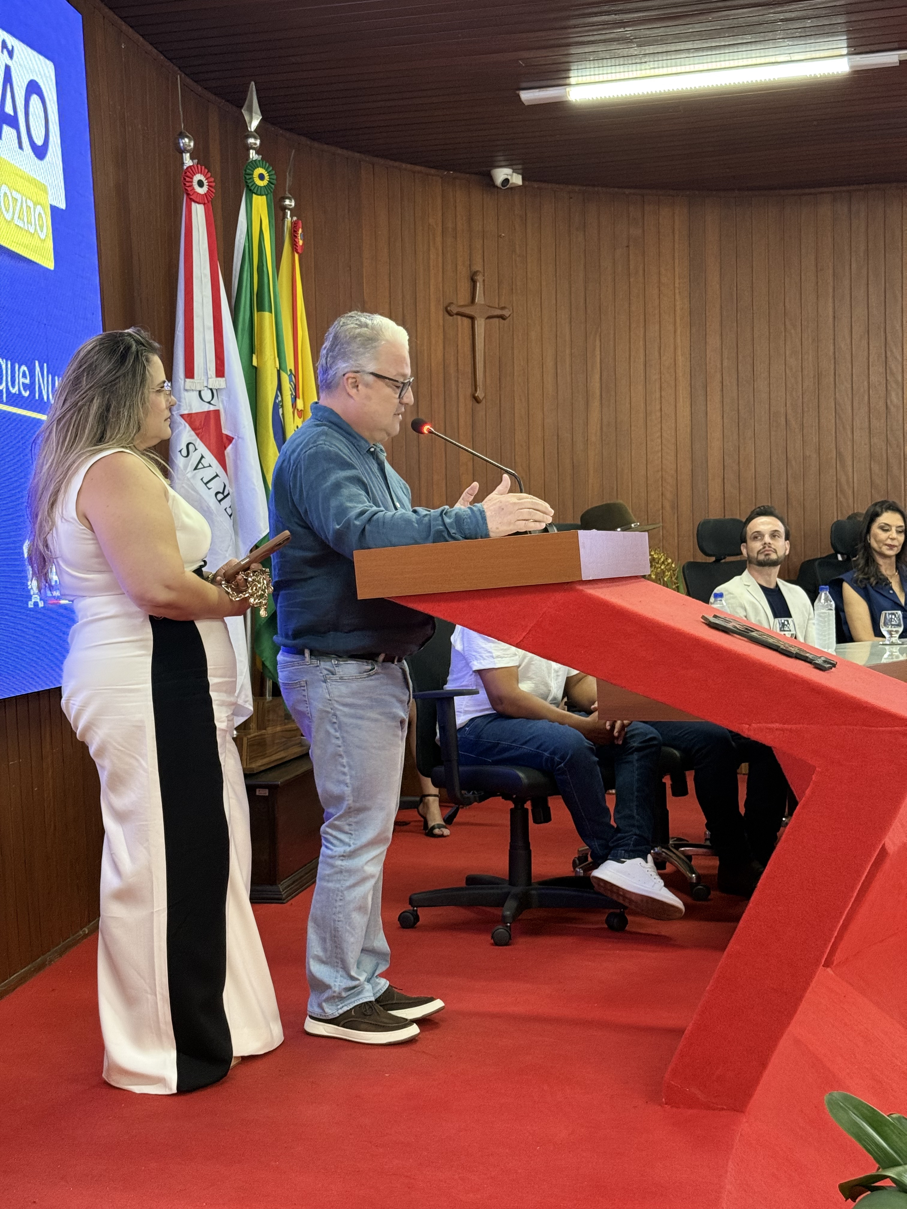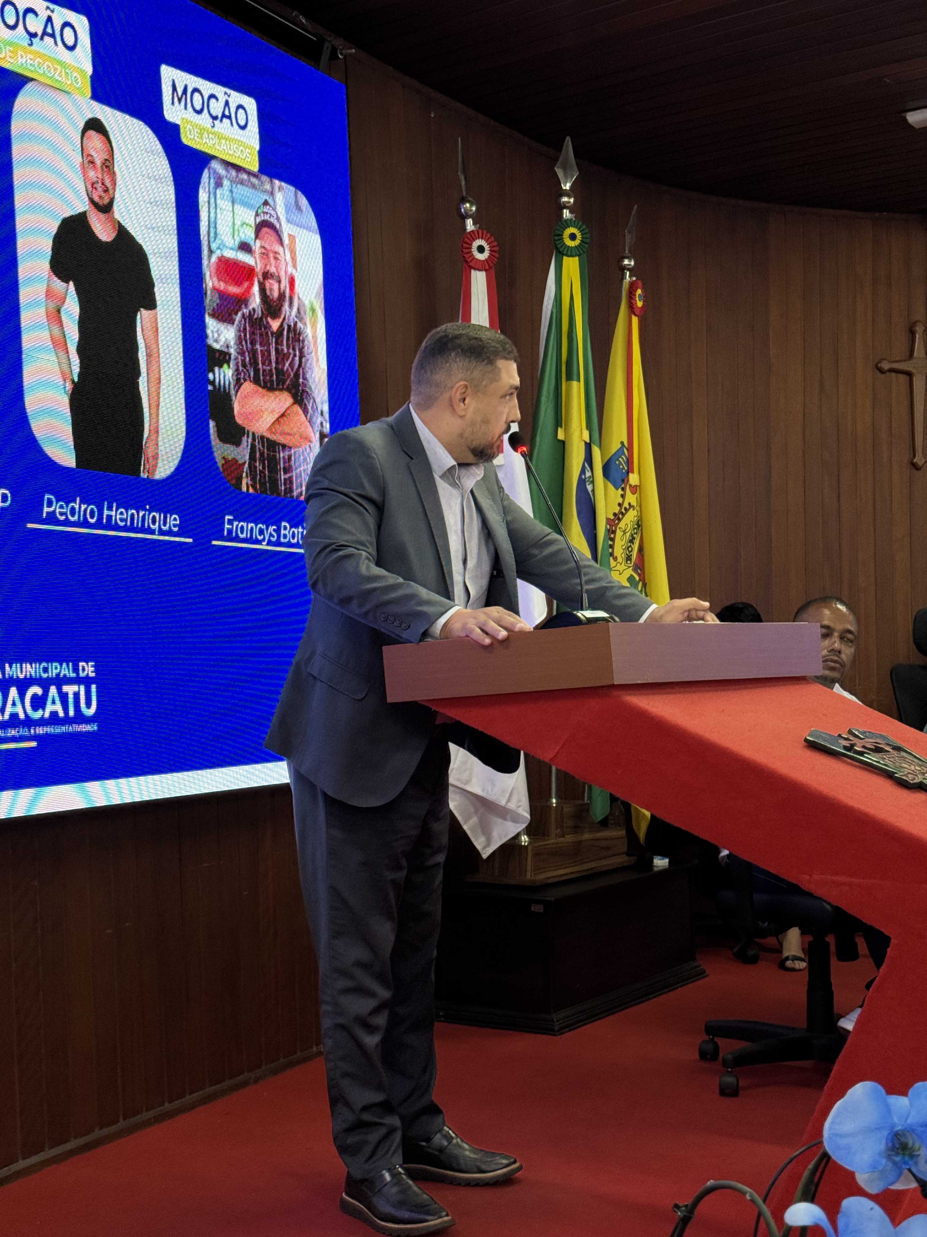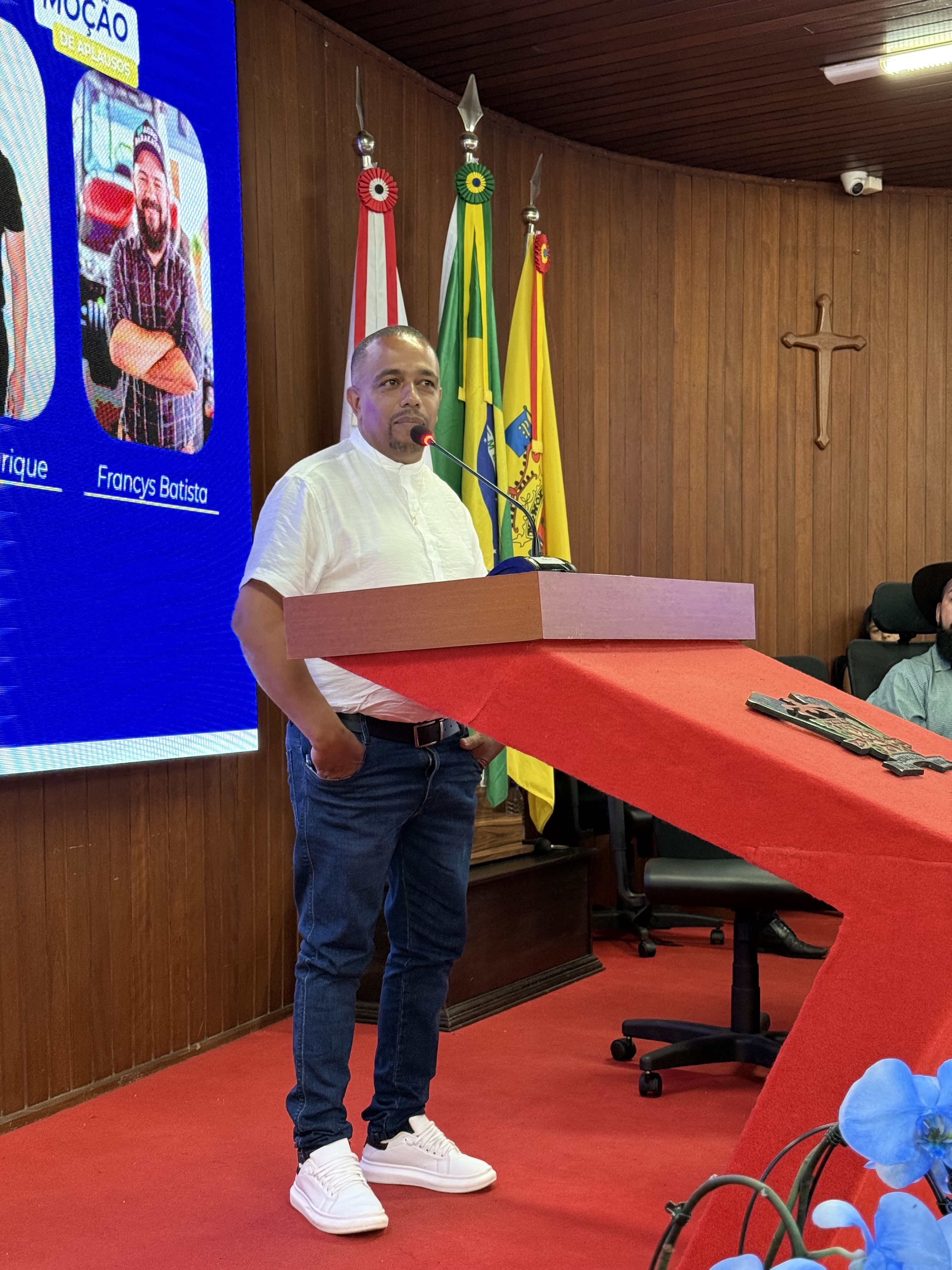 A Câmara Municipal de Paracatu realizou, na noite do dia 4 de novembro, uma Sessão Solene especial dedicada à entrega de títulos e moções de reconhecimento a personalidades e instituições que se destacaram por suas contribuições à sociedade paracatuense. A solenidade foi realizada por iniciativa do Vereador e Presidente Manoel Alves, reunindo homenageados, familiares, autoridades e membros da comunidade no plenário da Casa Legislativa. Durante o evento, foram concedidas as seguintes honrarias: Mérito Desportivo ao Esporte Clube AMABAP, em reconhecimento à sua trajetória, conquistas e ao título de Campeões da Copa Amapá, além dos relevantes serviços prestados ao esporte e à comunidade. Moção de Aplausos ao Sr. Francys Batista de Oliveira, em celebração aos 10 anos do Paracatu Rural e pelos importantes serviços prestados ao fortalecimento do agronegócio e ao desenvolvimento local. Diploma de Honra ao Mérito à Sra. Patrícia Gonçales Rodrigues Ribeiro, como forma de reconhecimento à sua trajetória e dedicação em prol da comunidade paracatuense. Moção de Regozijo ao Sr. Pedro Henrique Nunes e Silva, em homenagem à sua atuação destacada e às relevantes contribuições sociais e comunitárias. O presidente Manoel Alves destacou, em sua fala, a importância de reconhecer o trabalho e o esforço de pessoas e instituições que ajudam a construir uma Paracatu melhor. “Essas homenagens são um gesto de gratidão do Poder Legislativo a todos que fazem a diferença em nossa cidade, seja no esporte, na comunicação, na solidariedade ou na promoção do bem comum”, afirmou. A cerimônia foi transmitida ao vivo, permitindo que toda a população acompanhasse esse momento de reconhecimento e celebração.